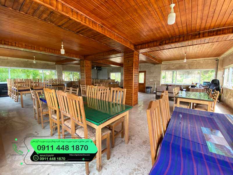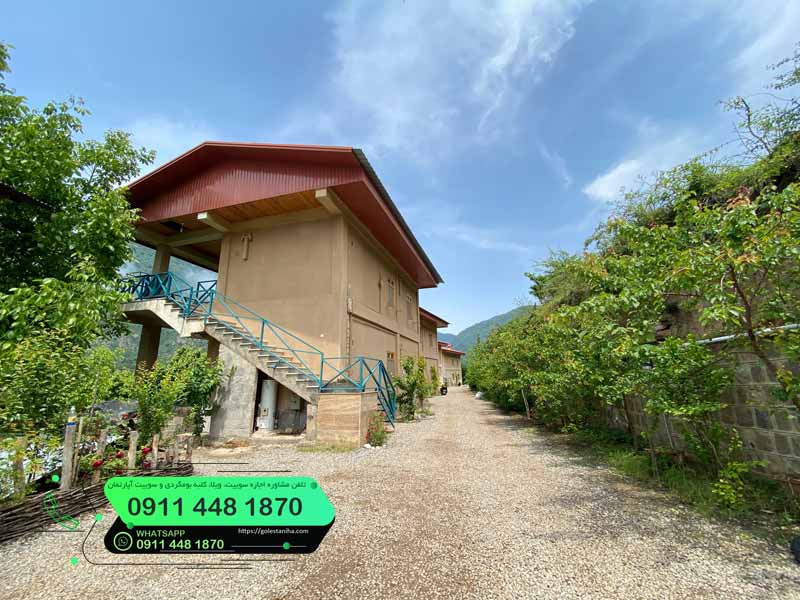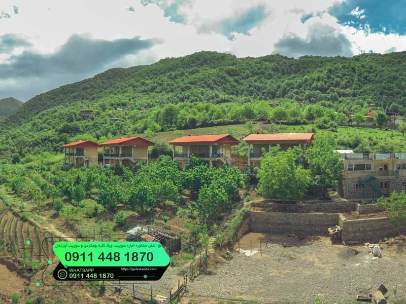 چهارساختمان دوطبقه با 8 واحد 75 متری مجزا و نسبتا مجهز که در زمینی به مساحت شش هزار متر در میان جنگل های انبوه هیرکانی قرار گرفته است .